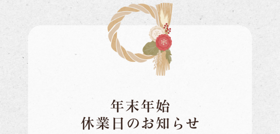 年末年始休業のお知らせ